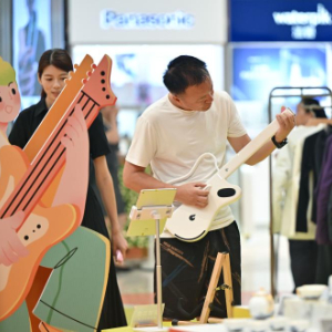 11月9日,顾客在三亚国际免税城选购可随身携带的乐器。这是新增免税品类。