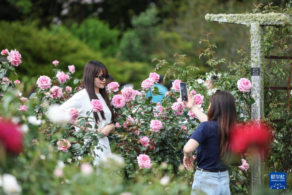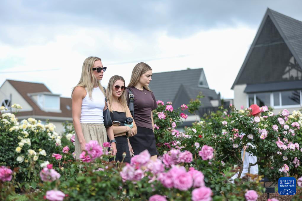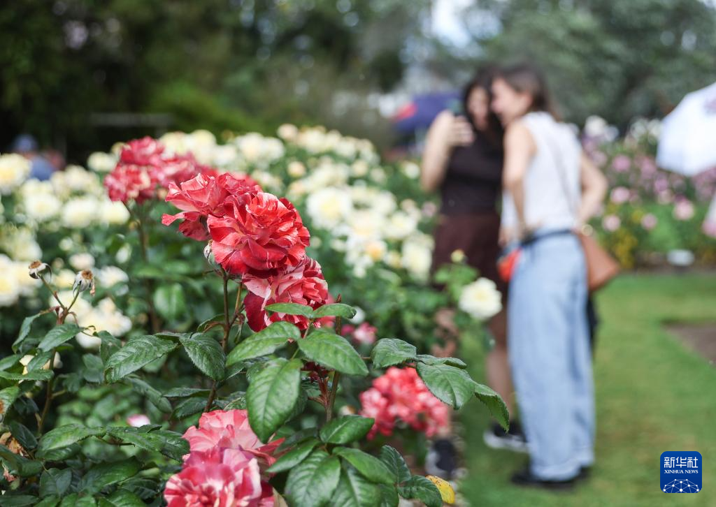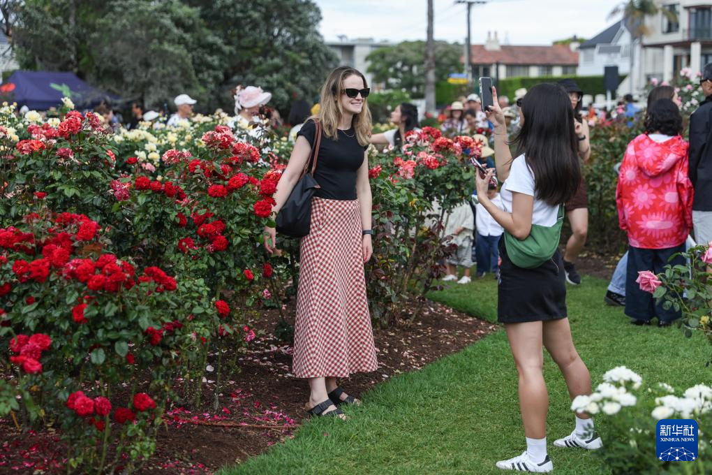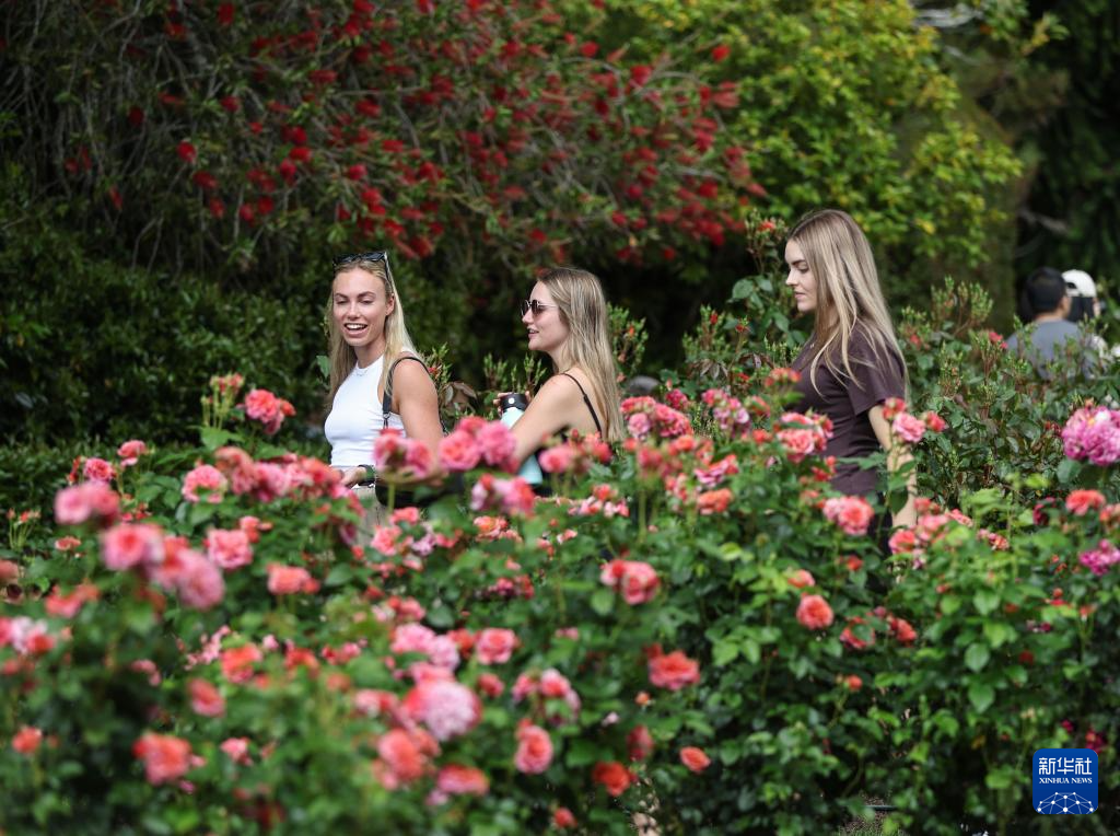 随着南半球天气转暖,奥克兰帕内尔玫瑰园的数千株鲜花竞相绽放,吸引许多游人前来观赏。