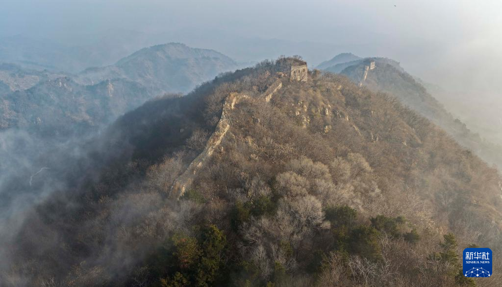 11月12日在河北省遵化市小厂乡拍摄的古长城晨景(无人机照片)。