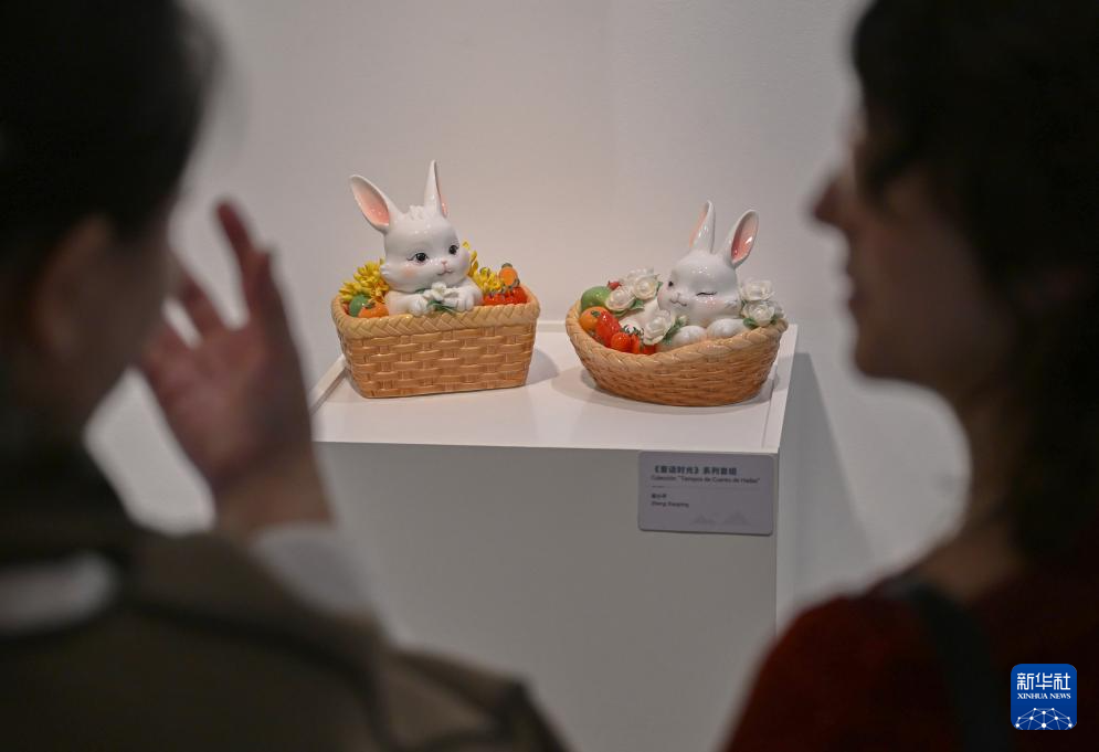 11月11日,观众在西班牙塔拉韦拉文化中心欣赏德化白瓷展品。