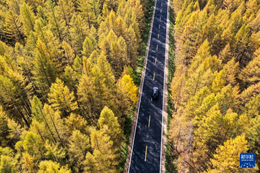 这是9月27日在吉林省安图县二道白河镇拍摄的G331风景(无人机照片)。