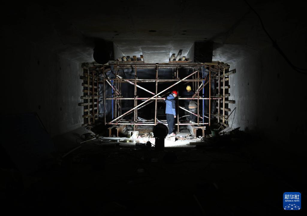 11月13日,工人在平漯周高铁湛叶舞特大桥C段连续梁合龙施工现场进行混凝土捣固作业。