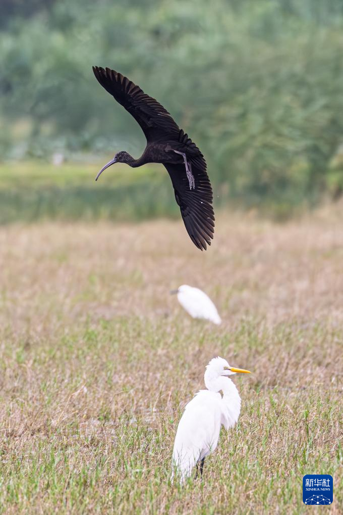 近日,一只彩鹮现身海南昌江海尾国家湿地公园。这是自2024年以来,彩鹮连续第二年“打卡”此地。