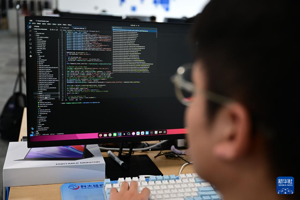 10月24日,张鸿伟在编写和调试代码。新华社记者 周牧 摄