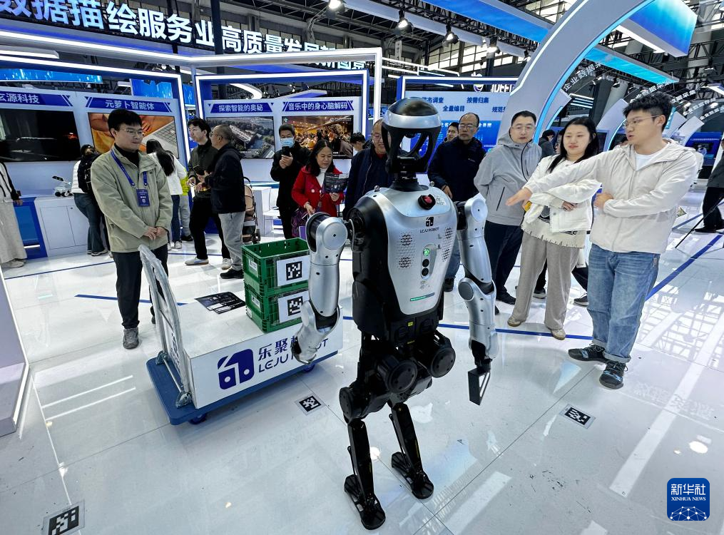 10月24日,在合肥乐聚机器人技术有限公司,工作人员在查看人形机器人的测试数据。新华社记者 杜潇逸 摄