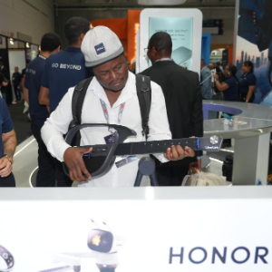 11月11日,在南非开普敦,人们参观2025年非洲科技节上的中国企业展台。