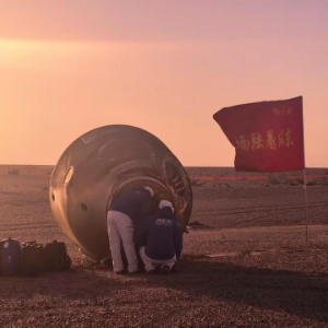 11月14日,载着神舟二十号航天员乘组的神舟二十一号载人飞船返回舱在东风着陆场成功着陆。