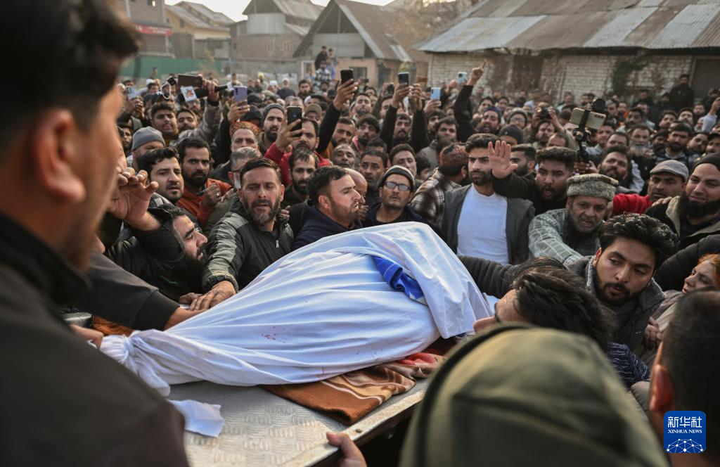 11月15日,在印控克什米尔地区斯利那加,人们哀悼爆炸事件中的遇难者。