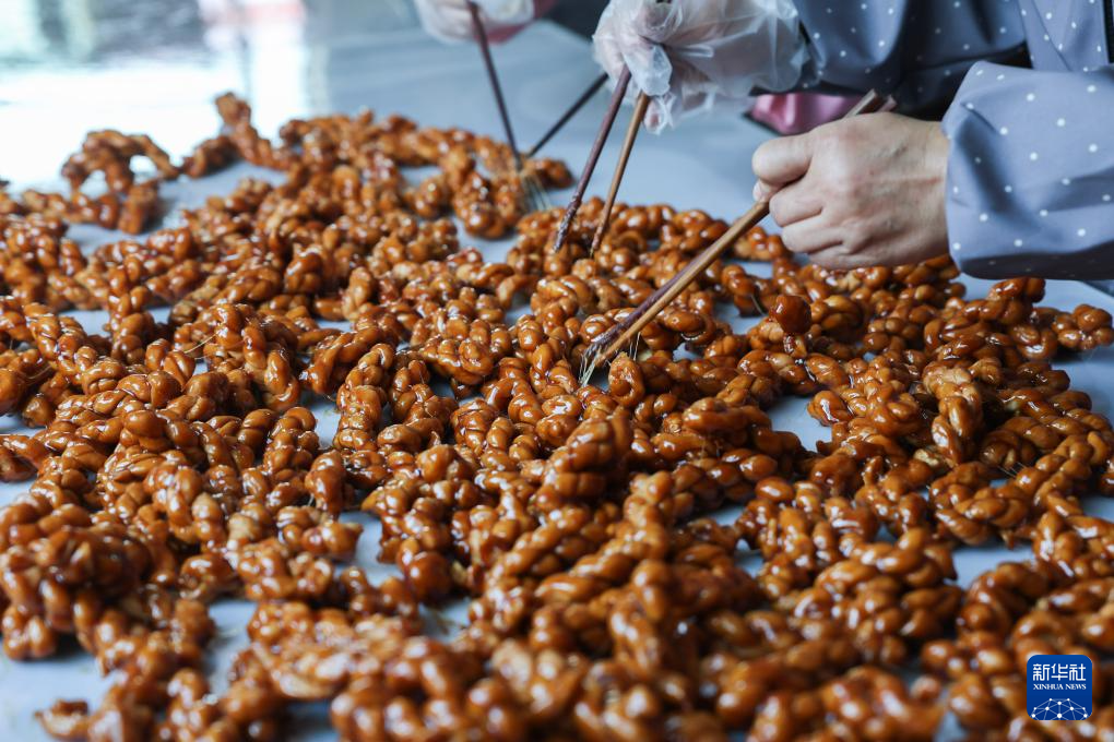 这是刚刚做好的红糖麻花,也是当地的冬季传统美食(11月15日摄)。