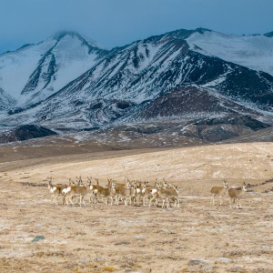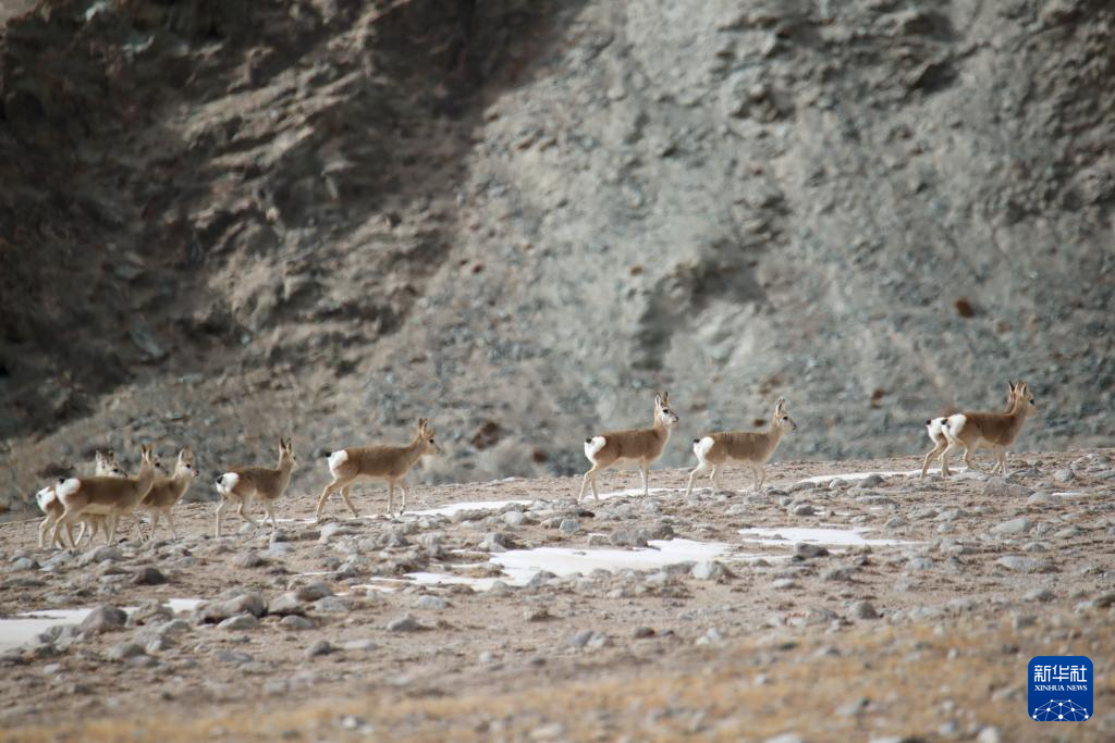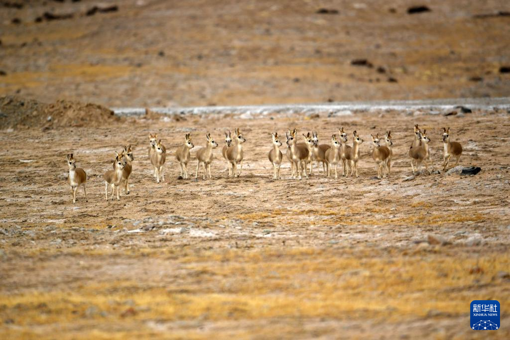 11月14日,国家二级保护野生动物藏原羚在甘肃省阿克塞县阿勒腾乡哈尔腾草原活动觅食。