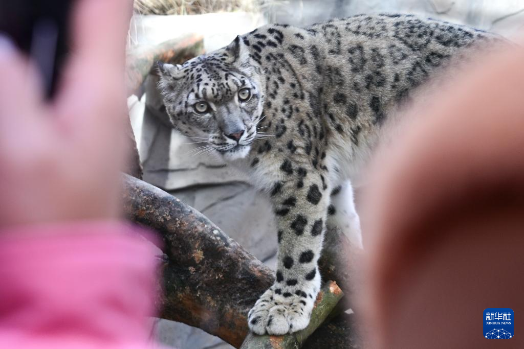 11月15日,在青海省西宁野生动物园,游客在观看雪豹。