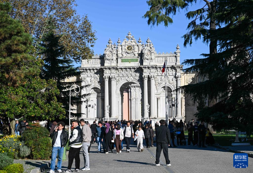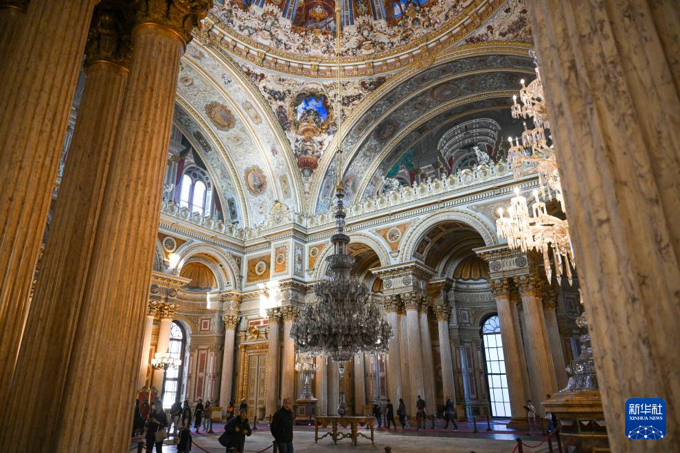 11月15日,游客在土耳其伊斯坦布尔欣赏多尔玛巴赫切宫中的展品。