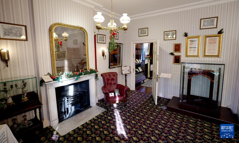 这是11月17日在英国伦敦狄更斯博物馆拍摄的狄更斯的书房。