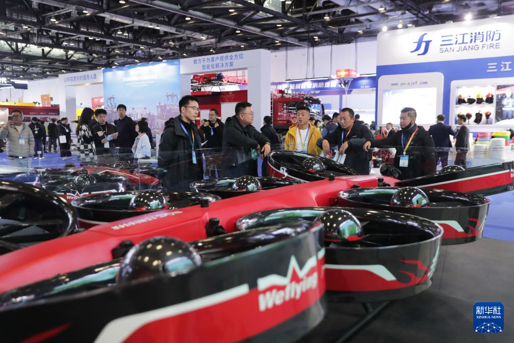 11月18日,观众在2025中国国际应急管理展览会玮航科技展位参观。