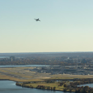 这是11月17日从美国首都华盛顿的华盛顿纪念碑上拍摄的位于弗吉尼亚州阿灵顿的里根国家机场。
