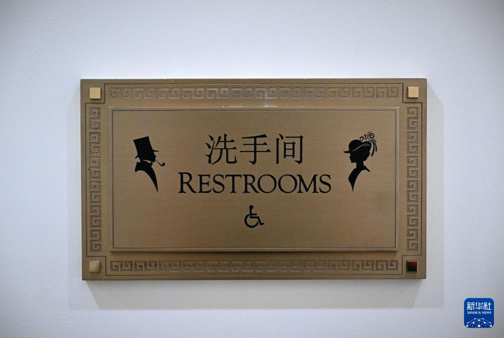 11月6日,在广西柳州市群众艺术馆,参观者走入公共卫生间。该卫生间标识用民族服饰展示文化特色,中英文文字提供准确信息。