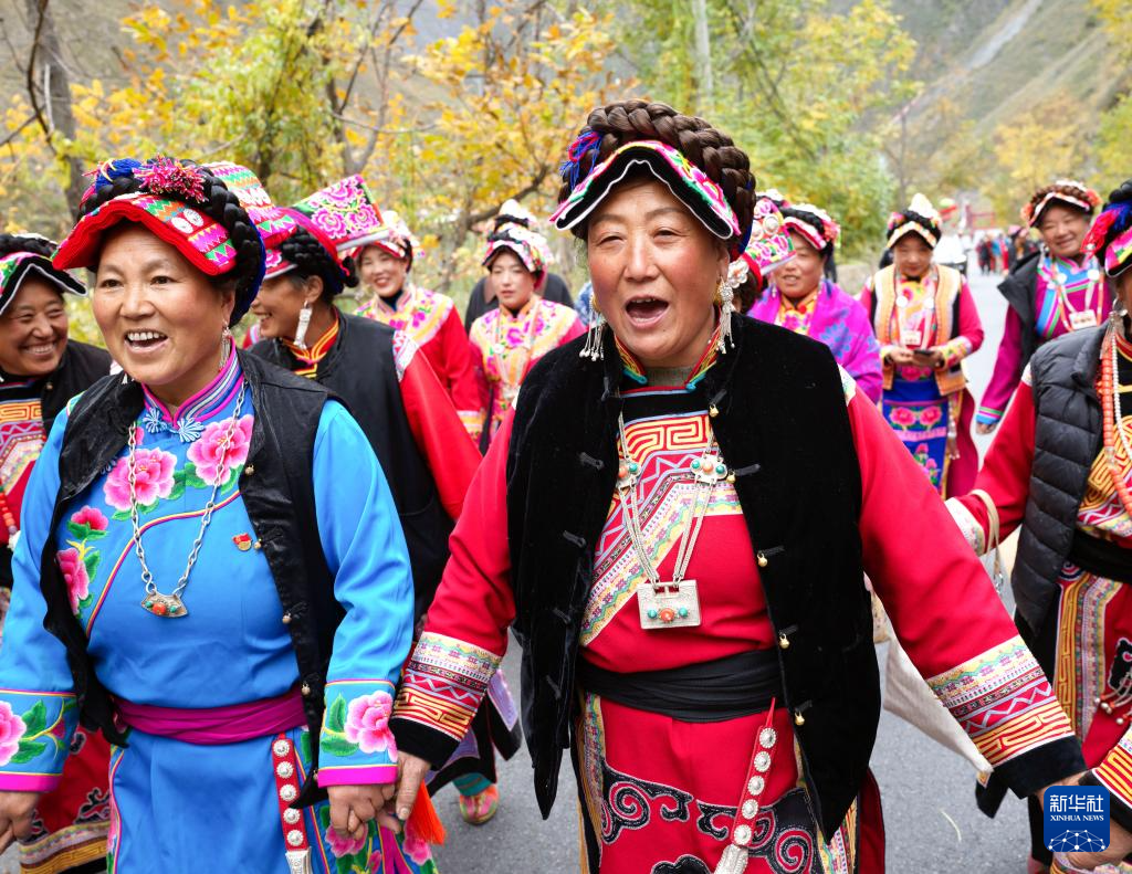 11月18日,茂县赤不苏镇群众在参加祈福仪式的路上。