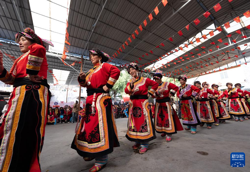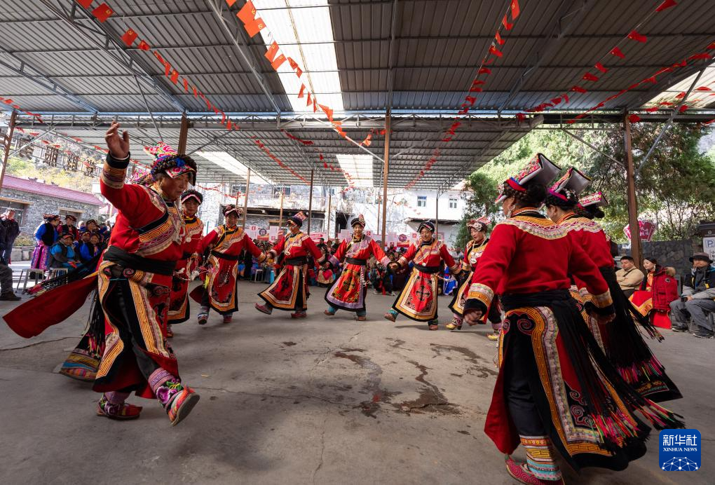 11月18日,四川省阿坝藏族羌族自治州茂县赤不苏镇举行特色民俗文化活动,当地群众身着传统民族服饰,与游客一起载歌载舞、品尝咂酒、共话丰收,喜迎一年一度的羌历新年。