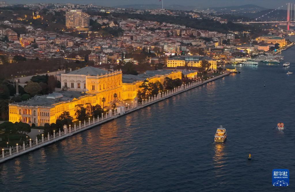 这是11月20日拍摄的在土耳其伊斯坦布尔博斯普鲁斯海峡欧洲一侧夜景(无人机照片)。