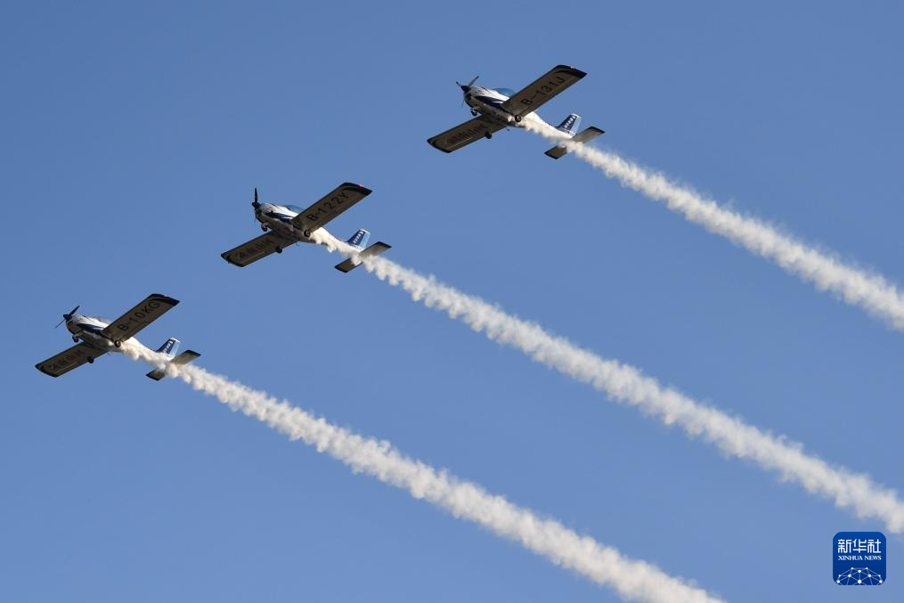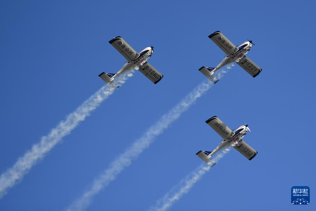 这是11月21日在株洲芦淞机场拍摄的动态飞行表演。