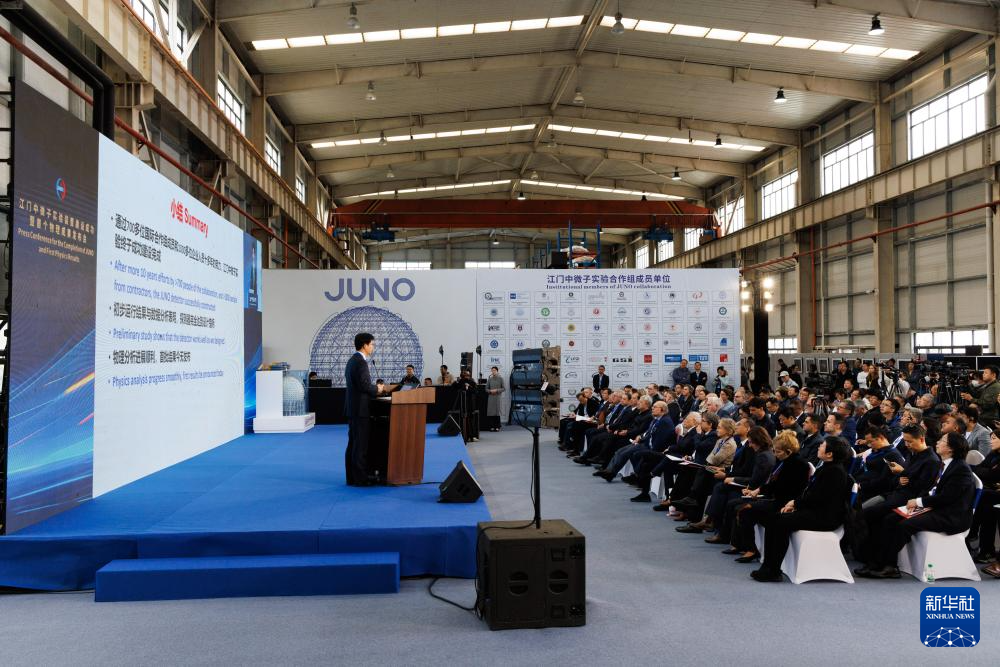11月19日,中国牵头的国际合作项目江门中微子实验(JUNO)装置在广东省江门市发布了其建成后的首个物理成果:研究人员通过对今年8月26日至11月2日共59天有效数据的分析,测量出描述中微子振荡的两个参数,精度比此前实验的最好记录提高了1.5-1.8倍。这意味着其探测器关键性能指标全面达到或超越设计预期。