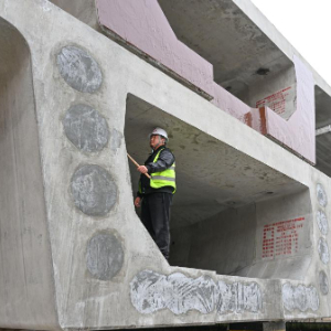 11月23日,在重庆市万州中铁十一局响水镇制梁场现场,工作人员在检查箱梁内部结构。