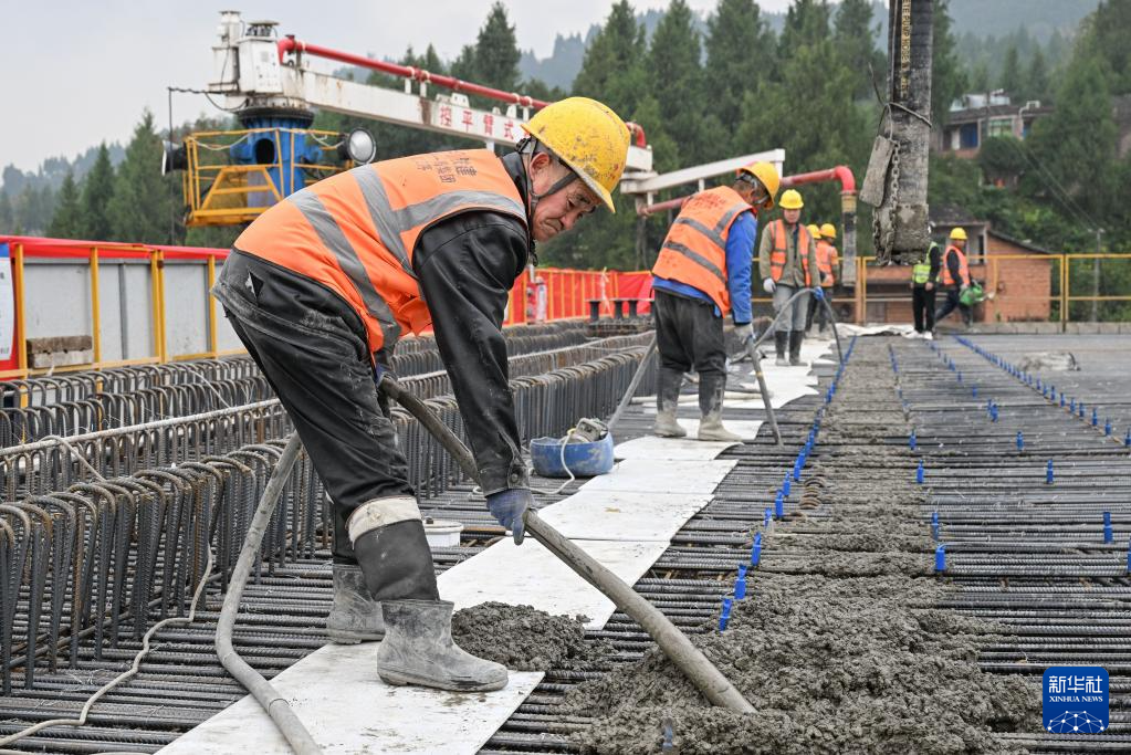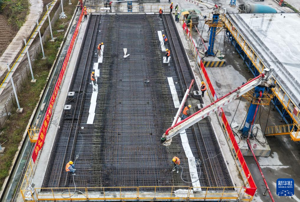 11月23日,在重庆市万州中铁十一局响水镇制梁场现场,工作人员进行最后一榀箱梁的制作。