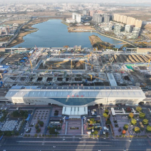 这是苏州北站综合枢纽工程建设现场(11月25日摄,无人机照片)。
