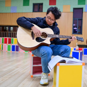 11月26日,在宁波市江北青少年活动中心,参加青年夜校吉他课的学员在练习。