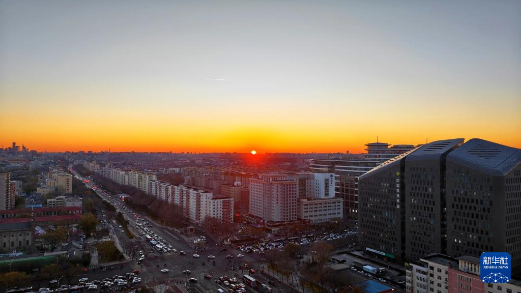 这是11月27日在北京宣武门附近拍摄的日出(手机照片)。