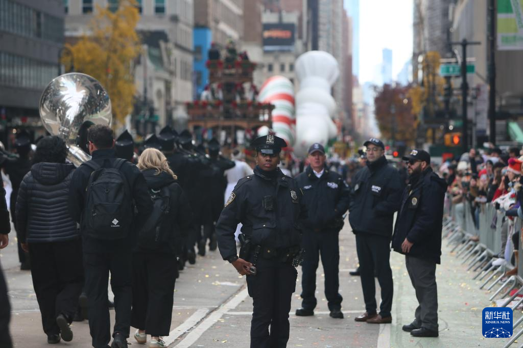 11月27日,在美国纽约,警察在感恩节游行活动现场值守。