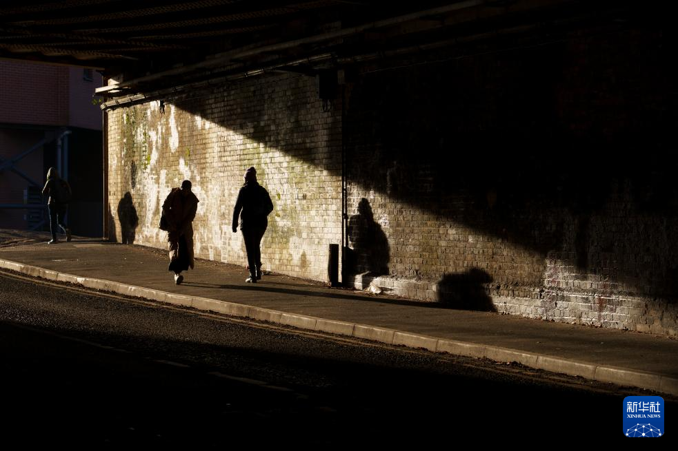 11月26日,人们行走在英国曼彻斯特一处立交桥下。