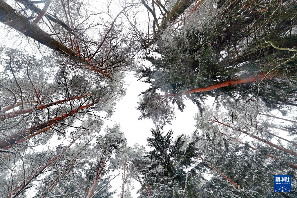 这是11月24日在白俄罗斯明斯克州拍摄的雪后森林。