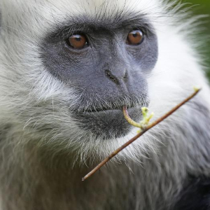 11月27日,在广西崇左白头叶猴国家级自然保护区板利片区,一只白头叶猴在进食。