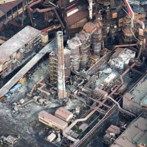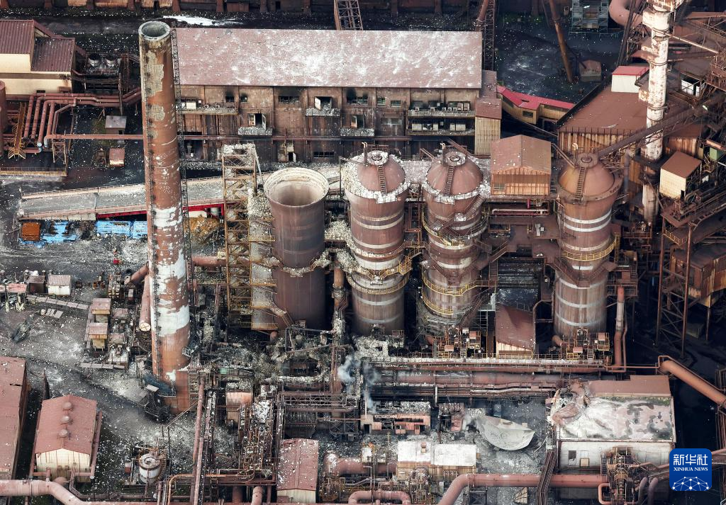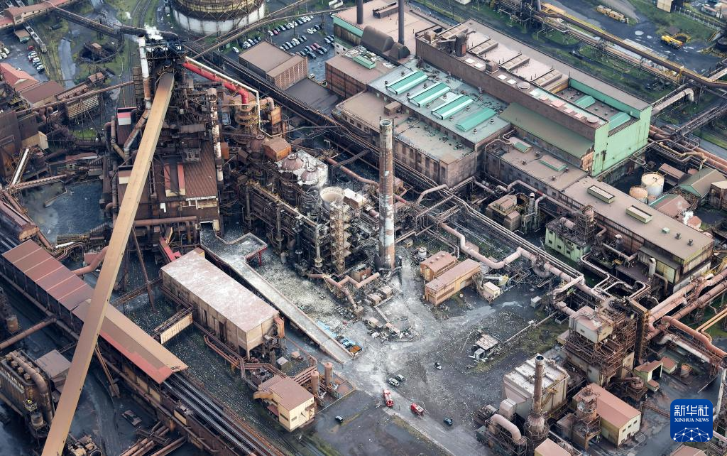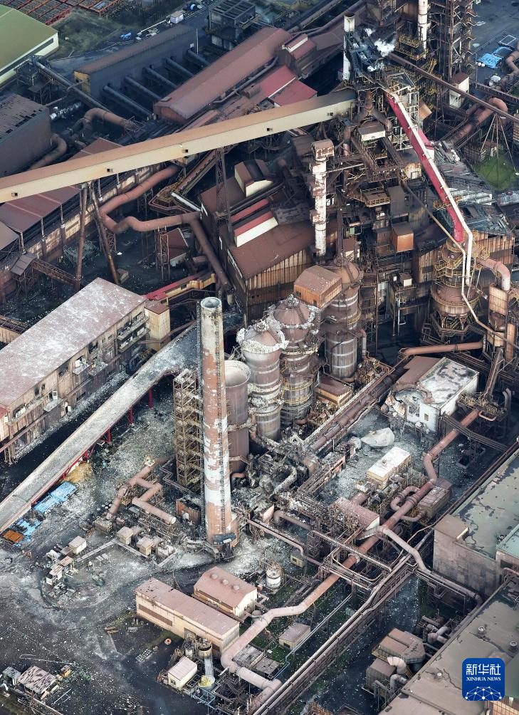 这是12月1日在日本北海道室兰市航拍的室兰市日本制铁公司北日本制铁所工厂火灾后景象。