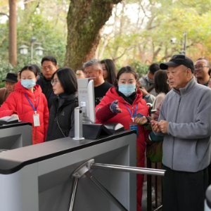 12月1日,首批免票游客验证预约信息后进入灵隐飞来峰景区。