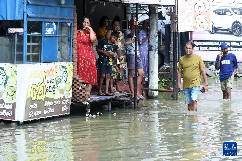 这是12月1日在斯里兰卡首都科伦坡郊区拍摄的一处受灾区域。