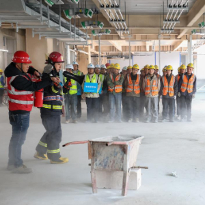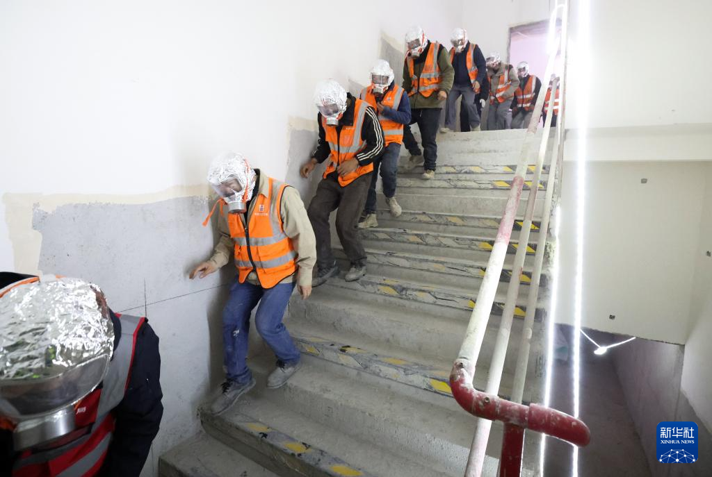 12月2日,项目工作人员在进行消防应急逃生演练。