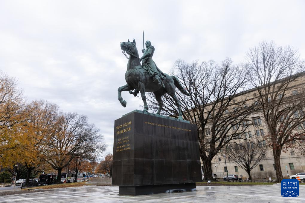 这是12月2日在美国首都华盛顿拍摄的委内瑞拉民族英雄、南美解放者西蒙·玻利瓦尔的骑马雕像。