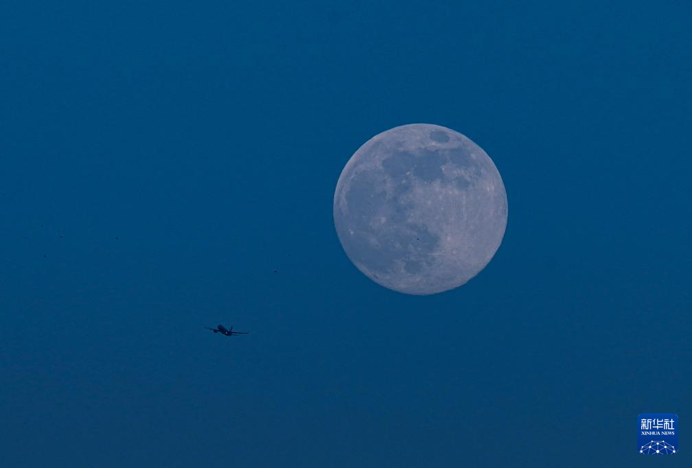 12月4日在浙江省温州市上空拍摄的月亮和飞机。