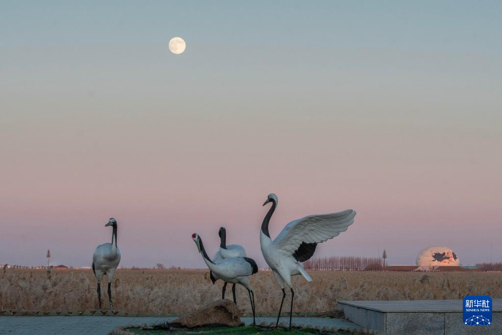 12月4日在位于黑龙江省齐齐哈尔市的扎龙国家级自然保护区拍摄的月亮。