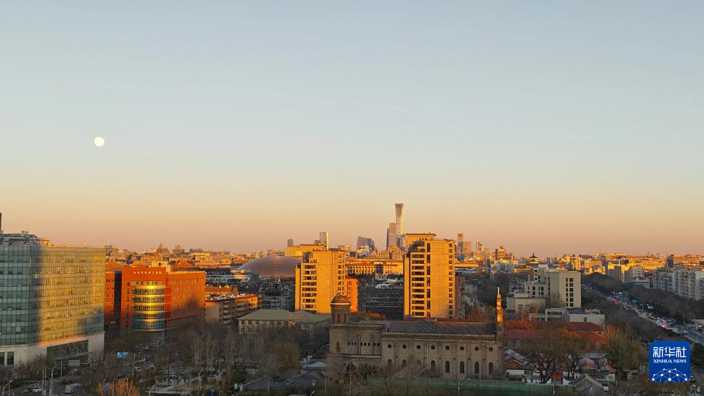 这是12月4日在北京宣武门附近拍摄的月亮与城市景观(手机照片)。