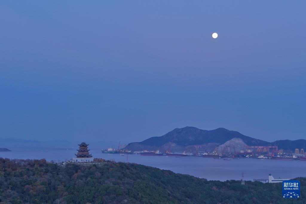 12月4日在浙江省舟山市岱山县高亭港拍摄的月亮。