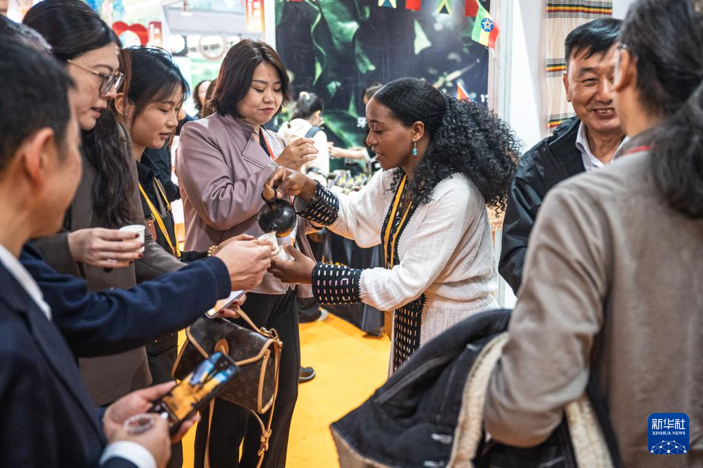 12月5日,人们在活动现场品尝埃塞俄比亚咖啡。