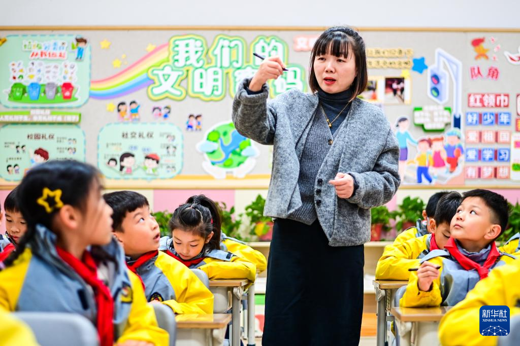 12月3日,杭州市长寿桥岳帅小学的教师在课堂上教导学生们如何使用智能笔答题。通过这种智能笔,教师可以实时关注学生的答题情况与正确率,增加课堂的趣味性与学生们的参与度。
