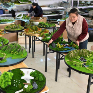 12月8日,工人在河北省石家庄市平山县上三汲乡河渠村一家沙盘企业制作沙盘。