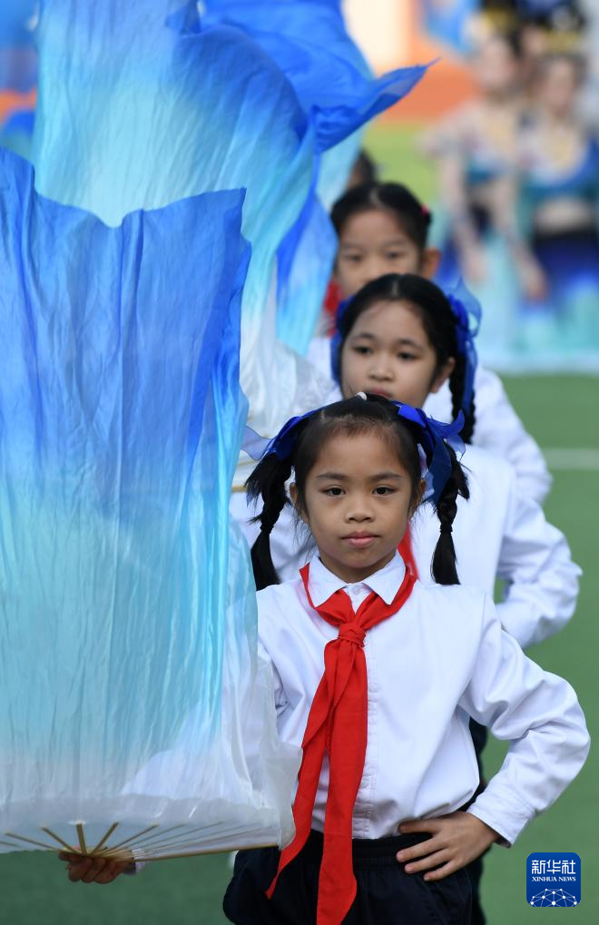 12月9日,在广西南宁市滨湖路小学教育集团滨湖校区,学生在“体育节”开幕式上表演团体操。