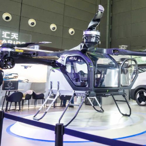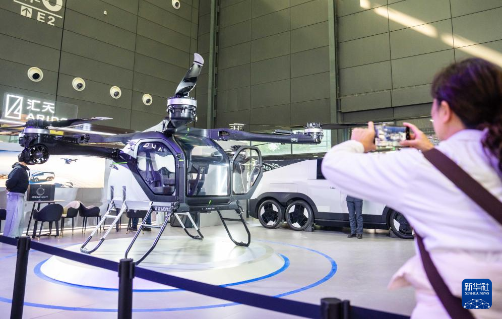 12月10日,观众在拍摄参展的飞行汽车飞行体。