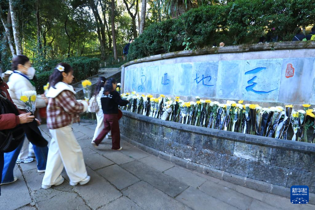 12月13日,游客在云南腾冲滇西抗战纪念馆天地正气碑前向抗战英烈敬献鲜花。