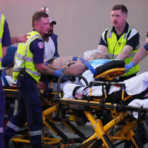 12月14日,在澳大利亚悉尼枪击事件现场,应急人员运送伤员。